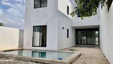 Casa nueva de dos plantas ,estilo minimalista con amplios espacios , linda vista al jardin con alberca , en planta baja recibidor,medio baño, sala y comedor,recamara con baño completo y closet con vista al jardin, area de lavado ,acceso de servicio, jardin con al alberca,cochera para dos autos,en planta alta, dos habitaciones con baño completo cada uno,closet vestidor para la habitacion principal y closet para la habitacion secundaria ,ssl de t.v.,cuarta habitacion ( opcional).Se encuentra en el norte de la ciudad, cercano a la plaza city center y plaza la isla, excelente ubicacion , cercano a colegios, centros comerciales, bancos, super y gasolinerias .